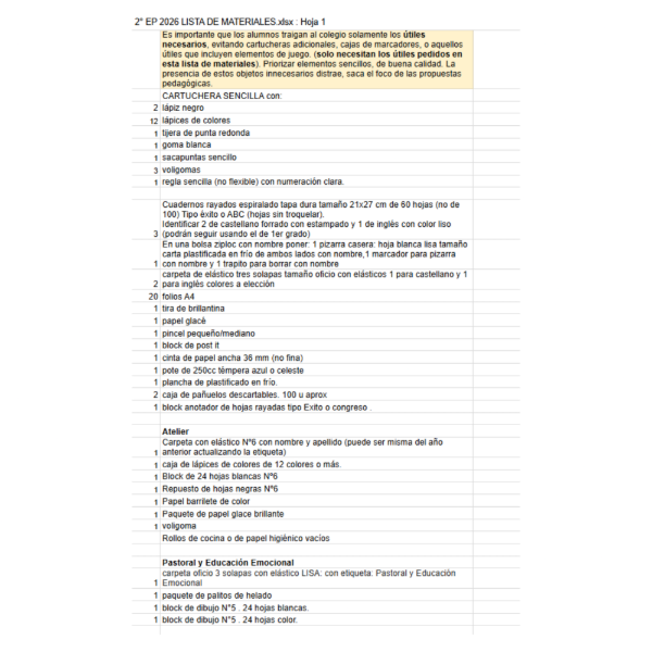 • El resto de los útiles y cuadernos van etiquetados y listos para usar.