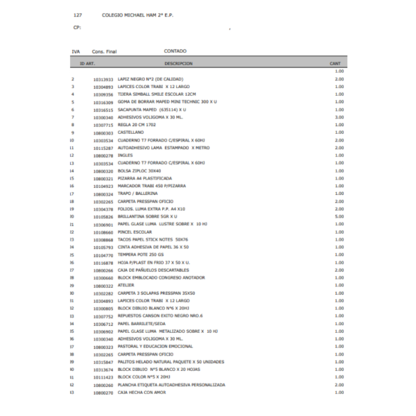 Nos ocupamos de TODA LA LISTA OFICIAL, incluyendo también los extras de perfumería/ferretería.