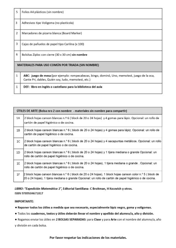 ✔ Todos los útiles de la lista oficial del colegio.