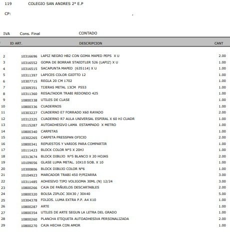 Nos ocupamos de TODA LA LISTA OFICIAL, incluyendo también los extras de perfumería/ferretería.