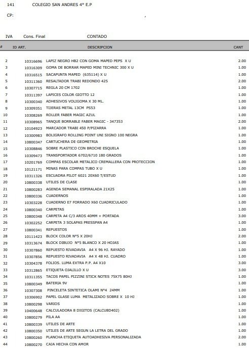 Nos ocupamos de TODA LA LISTA OFICIAL, incluyendo también los extras de perfumería/ferretería.