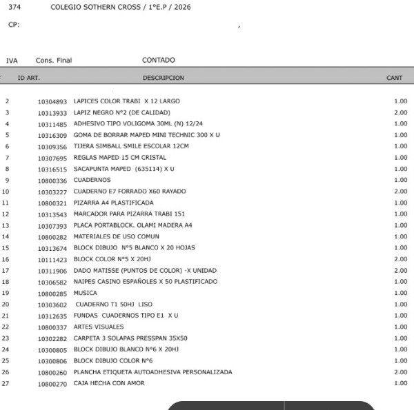 Nos ocupamos de TODA LA LISTA OFICIAL, incluyendo también los extras de perfumería/ferretería.