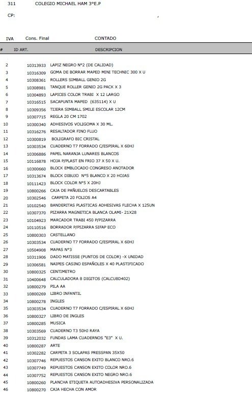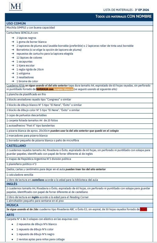 ✔ Todos los útiles de la lista oficial del colegio.