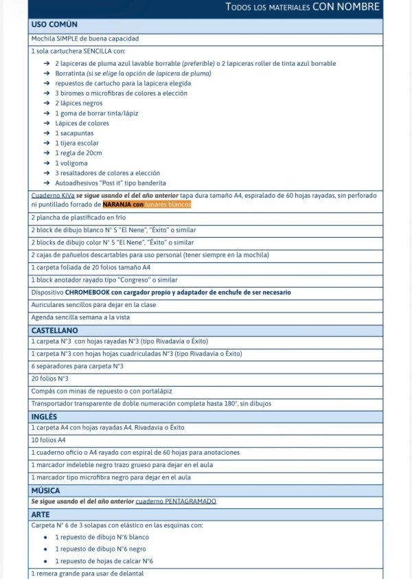 ✔ Todos los útiles de la lista oficial del colegio.