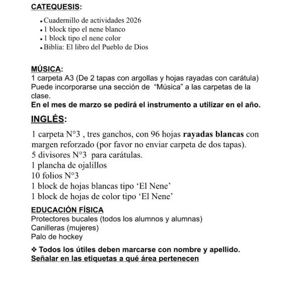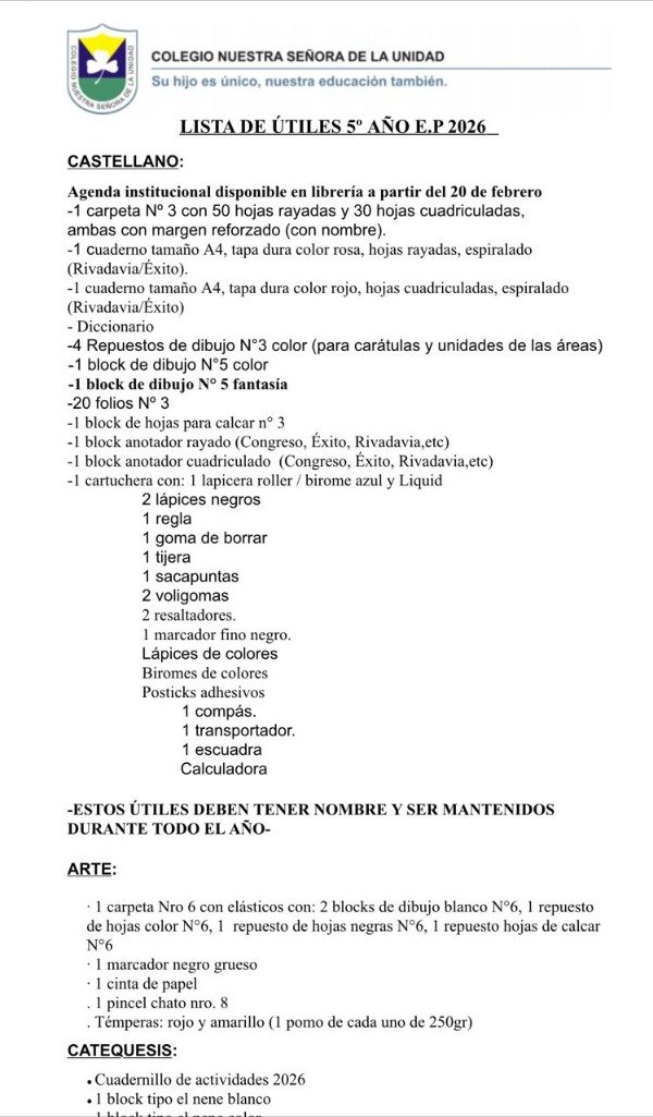 ✔ Todos los útiles de la lista oficial del colegio.
