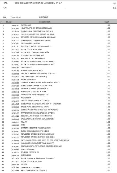 Nos ocupamos de TODA LA LISTA OFICIAL, incluyendo también los extras de perfumería/ferretería.