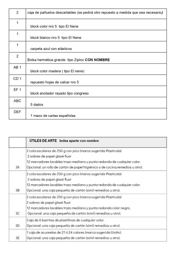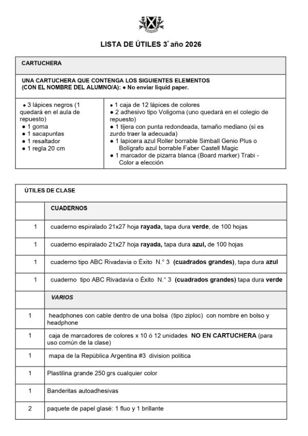 ✔ Todos los útiles de la lista oficial del colegio.