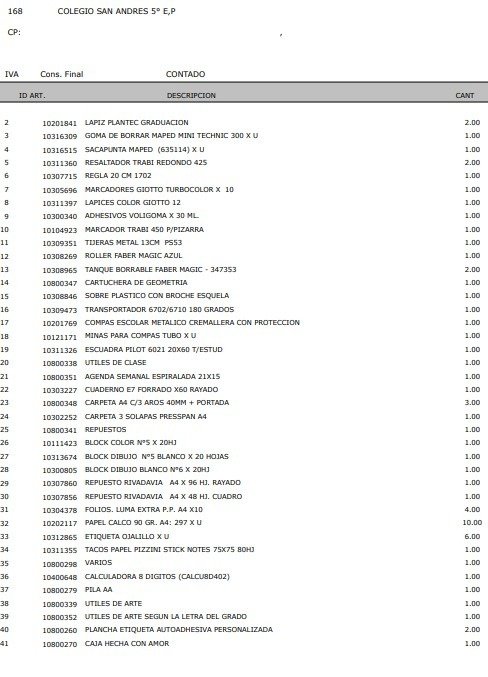 Nos ocupamos de TODA LA LISTA OFICIAL, incluyendo también los extras de perfumería/ferretería.