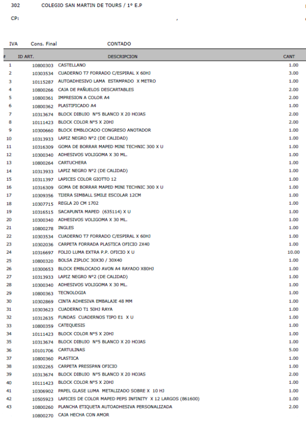 Nos ocupamos de TODA LA LISTA OFICIAL, incluyendo también los extras de perfumería/ferretería.