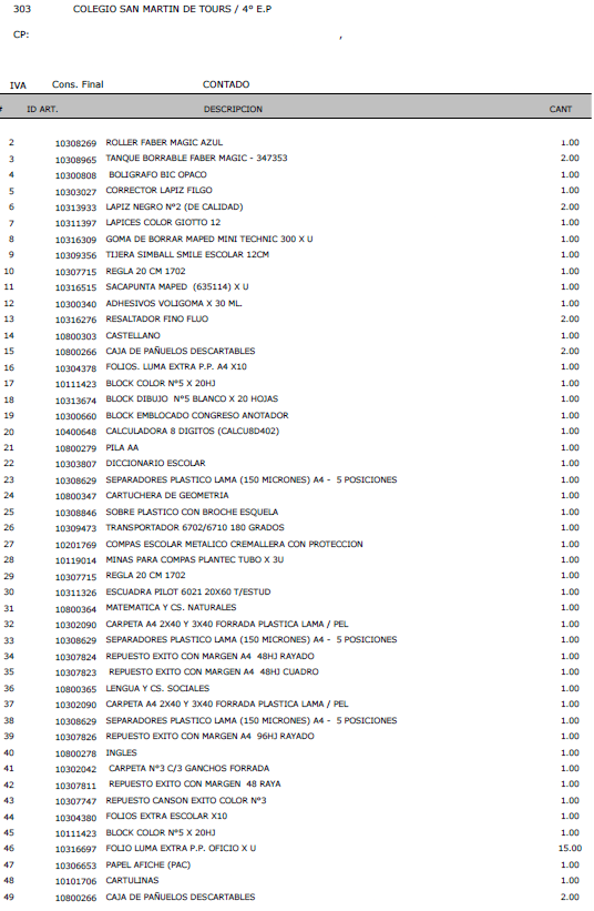 Nos ocupamos de TODA LA LISTA OFICIAL, incluyendo también los extras de perfumería/ferretería.