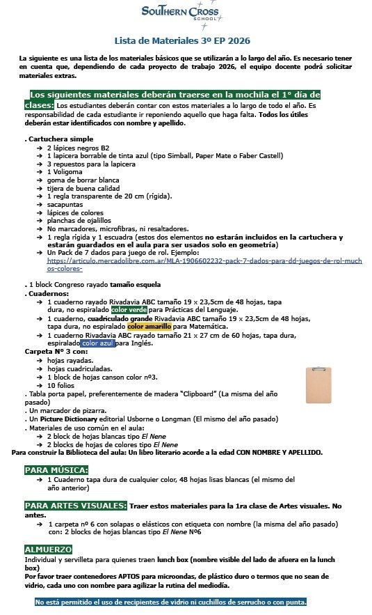 Caja Escolar - Colegio Southern Cross - TERCER AÑO