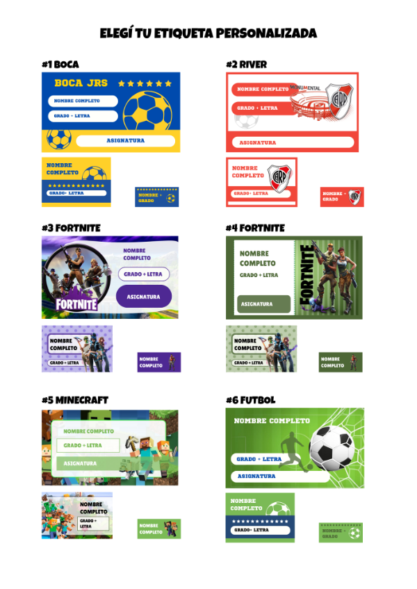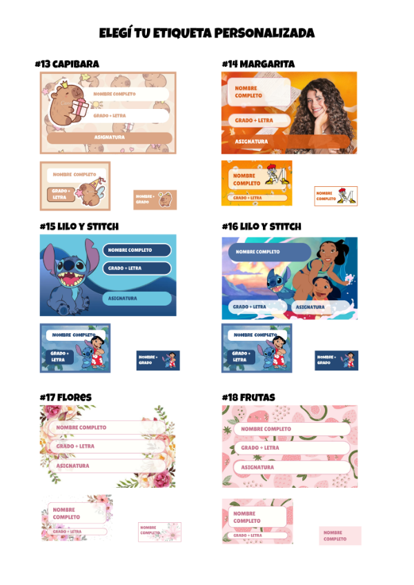2. Seleccioná el personaje para las etiquetas antes de finalizar la compra. 👉 Ver diseños de etiquetas