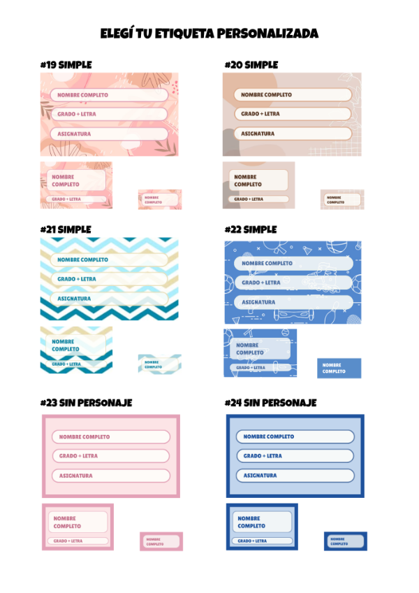 Útiles completos + etiquetas personalizadas – Todo en un solo pedido.