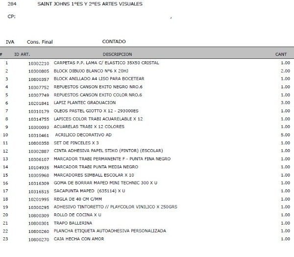 Nos ocupamos de TODA LA LISTA OFICIAL, incluyendo también los extras de perfumería/ferretería.