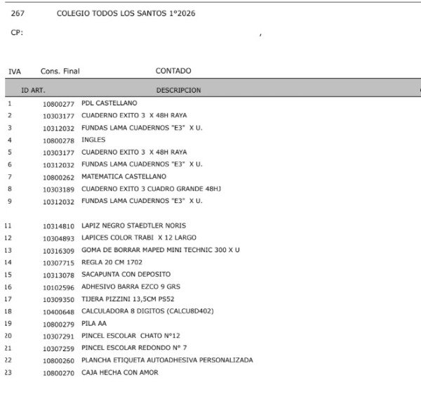 Nos ocupamos de TODA LA LISTA OFICIAL, incluyendo también los extras de perfumería/ferretería.